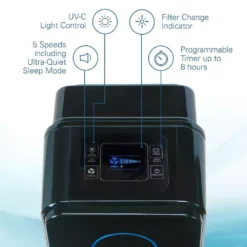 GermGuardian Elite Pluggable Air Purifier and Odor Reducer with UV Sanitizer for Small Rooms, Black