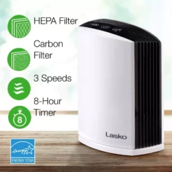 Lasko Pure Platinum Slim Profile Air Purifier with HEPA-Type Filtration and Auto Clean