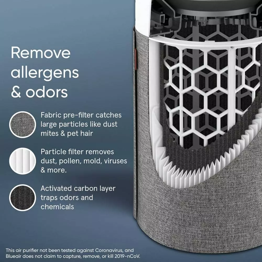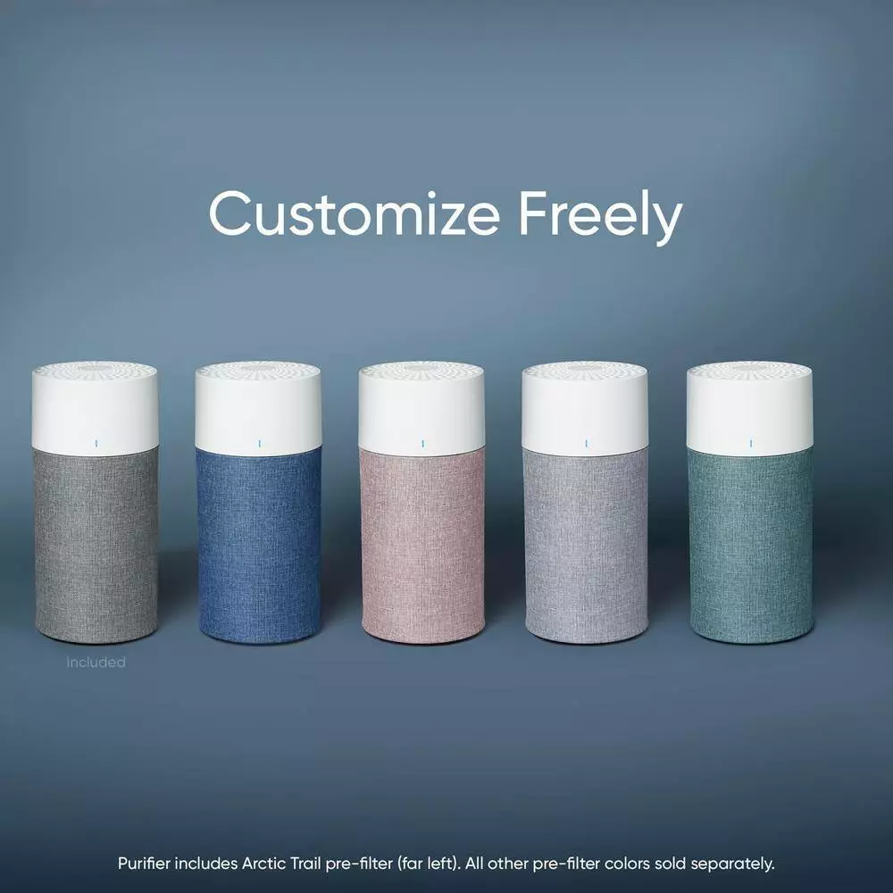 The Blue Pure 411 Auto air purifier takes a simple approach to air quality management with an integrated particle sensor, Auto mode setting, and LED air quality display. Independently evaluated for performance by the AHAM Verified Program for a Clean Air Delivery Rate (CADR) of 123 for fine smoke particles, 96 for pollen particles, and 107 for dust particles. Best for small rooms like nurseries, guest bedrooms, and home offices with a 360° air intake to filter room air about every 12-minutes (about 5x an hour at 190 sq. ft.) on high. The 3-step filter works with HEPASilent filtration technology to remove 99.97% of airborne particles down to 0.1 microns, like pollen, dander, mold, bacteria, viruses and more, while a layer of activated coconut carbon traps light household odors. Features a 3-color LED air quality display and one-touch enabled Auto mode setting to auto-adjust to real-time conditions. ENERGY STAR rated using less energy than an LED lightbulb (2-Watt – 10-Watt) and quieter than a whisper on low (18 dB – 48 dB). Change color with five fabric pre-filters inspired by Scandinavian nature. Pre-filter in Arctic Trail (gray) included Additional colors sold separately. All Blueair purifiers are AHAM Verified for Clean Air Delivery Rate and recommended room size, ENERGY STAR rated, and tested by the California EPA Air Resources Board (CARB) for safe ozone emissions.