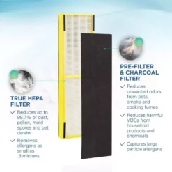 - Particle filter reduces pollen, dust, pet dander, mold spores, viruses and bacteria