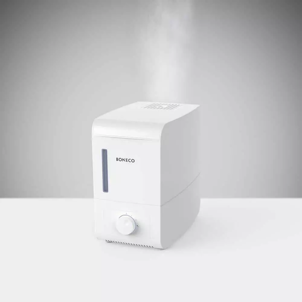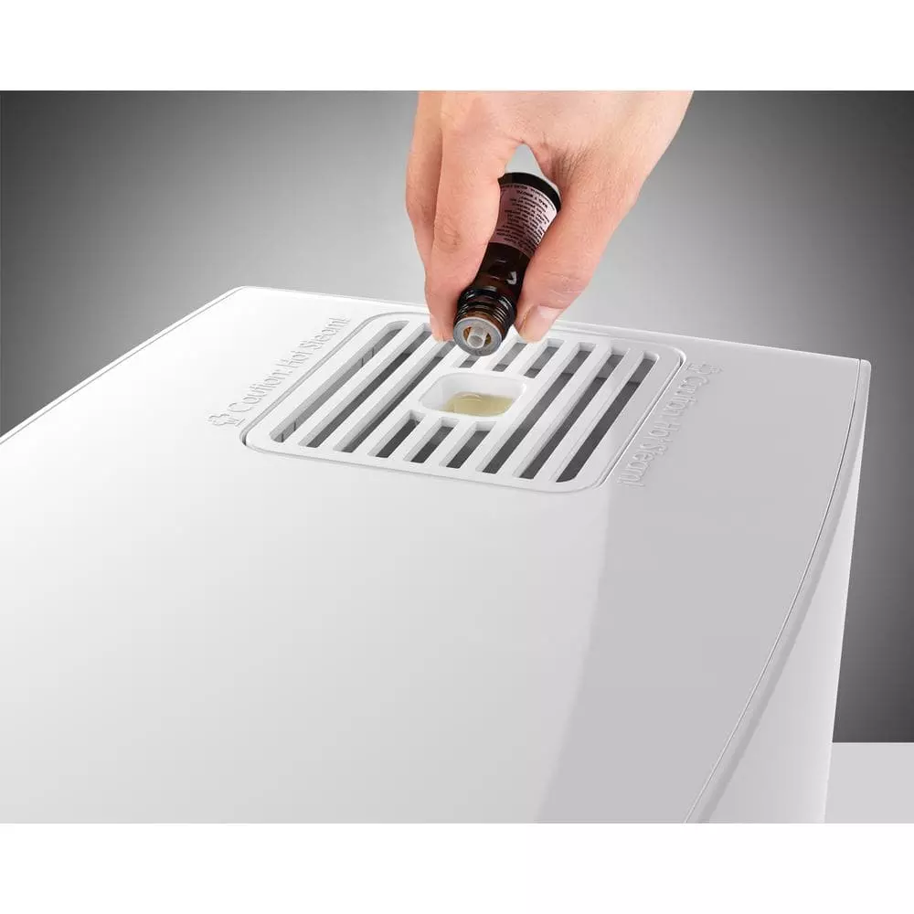 The hygienic and simple operation of the S200 Steam Humidifier will be a pleasure for the whole family. It is hygienic because the water vapor is boiled before exiting, so bacteria and minerals are efficiently eliminated. The built-in fan cools the steam so that the humidifier emits a pleasant hand warm steam. The device can be operated by turning the knob to one of two output levels. The cleaning is just as straightforward: fill the base with water and the decalcifying agent (EZCal recommended), activate the CLEANING mode, rinse and wipe the base once complete and you’re ready. This unit also has a fragrance tray for use with essential oils to add a pleasant aroma to your room.