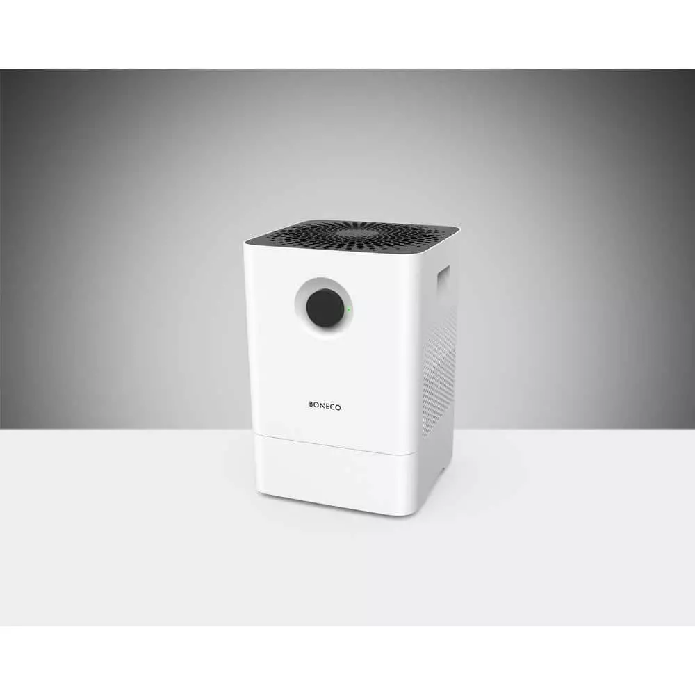 The W200 Air Washer system provides both air humidification and purification at the same time. The 3 dimensional evaporator mat turns through the water, picking up water droplets and allowing them to evaporate. The self-regulating evaporation principle ensures the correct humidity in the room, as the air automatically draws as much moisture as it needs at any given moment. Since only water will evaporate, there are no filters or other accessories needed. The water acts as a natural filter, which washes the air of impurities (e.g. dust, pollen and particle bound odors). Independent tests have shown that there is up to a 99% removal rate of pollen and dust mites after 10-hours of use. The W200 Air Washer can be used year-round and is especially suited for allergy sufferers due to the natural cleaning principle, without the need for additives. With the W200 Air Washer, cleaning could not be easier. The base of the air washer is dishwasher safe (top rack) and the evaporator mat is clothes washer safe. Wash when necessary for simple care and maintenance (see user manual for full details).