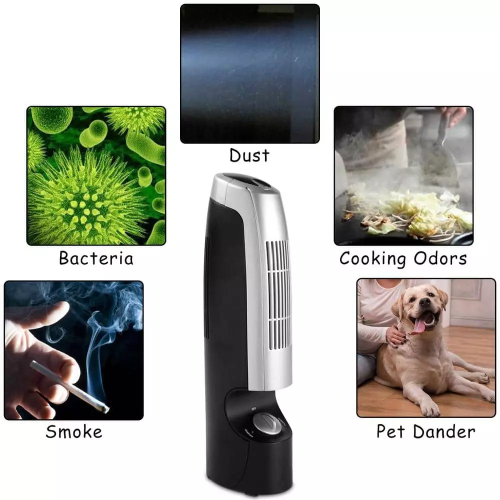 Our air purifier removes mold, smoke, germs, bacteria, viruses, common allergens, pet dander, odor and chemical gases from the air in your home, and provides a healthy breathing environment for you and your family. Our product operates using negative ions that pull in polluted air, trap contaminants, and release clean, healthy air. And there is an easy-control switch for you to use and choose different modes- Quiet, Whisper or Turbo. Also, its unique size and contemporary design make it a perfect fit for smaller rooms or office spaces. Moreover, it only consumes 7W of energy but the coverage area can be up to 300 sq. ft. It will provide you with clean and fresh air in just a matter of minutes. It will be a perfect gift for family, friends, and colleagues. What are you waiting for. Order one now.