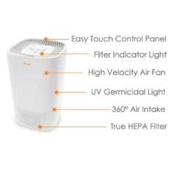 “Now selected as a Wirecutter pick! Small in size but mighty in power, this four-stage filtration air purifier combines a washable pre-filter, an odorization filter, a True HEPA filter, and a bipolar device to reduce contaminants in the air. The unit also employs a filter-change indicator, energy-saving eco mode, automatic speed control based on particles in the air, and an intuitive air quality indicator. The AP-1512HH can generate and maintain pure air in rooms up to 361 square feet, the size of a typical bedroom.”