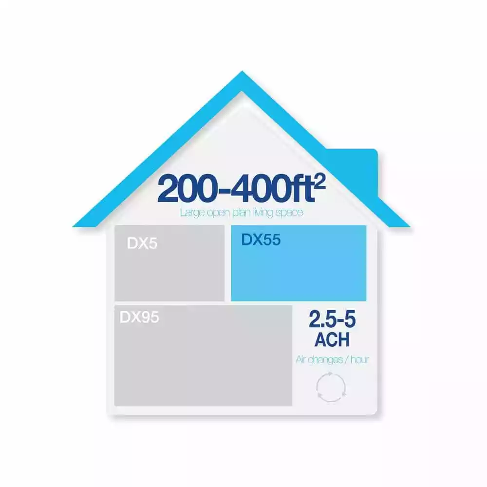 - Effectively purifies air in medium rooms 200 sq. ft. to 400 sq. ft.