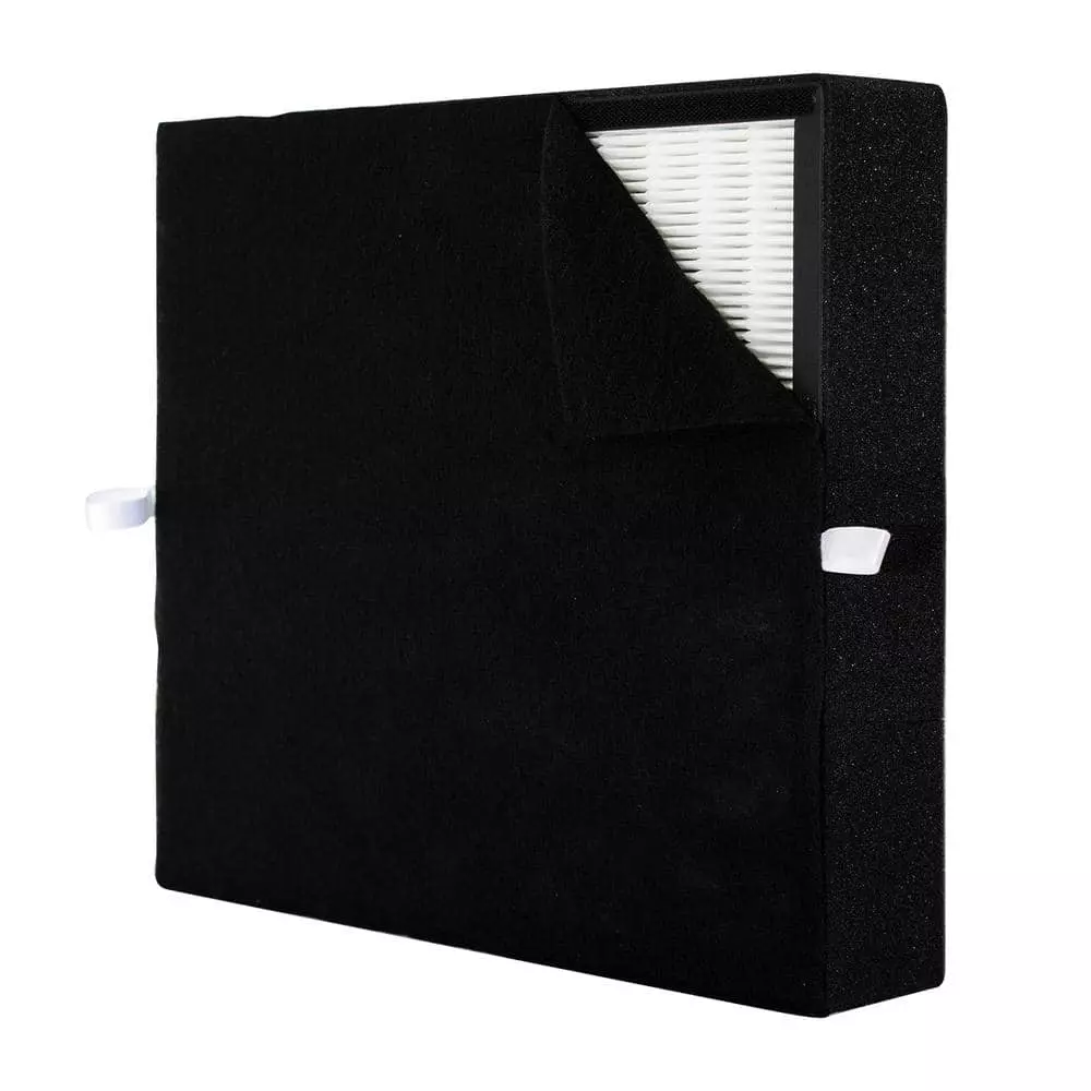 - Carbon pre-filter acts as first layer of filtration to capture larger particles before reaching HEPA filter, extending life of HEPA filter