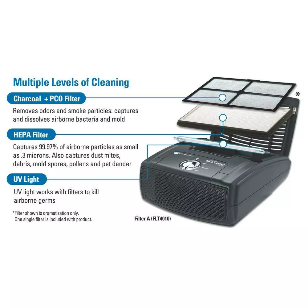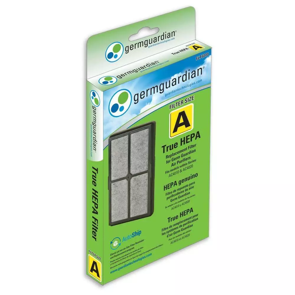 GermGuardian FLT4010 True HEPA GENUINE Replacement Filter A is a combination filter. It incorporates multiple layers of filtration including True HEPA, charcoal and PCO to help improve your indoor air quality. True HEPA filter captures 99.97% of airborne particles as small as 0.3 microns. It is recommended to use with the GermGuardian AC4010, AC4020 and BLACK+DECKER Model BXAP040. The use of this genuine Guardian Technologies replacement part will maintain the product’s performance and warranty.
