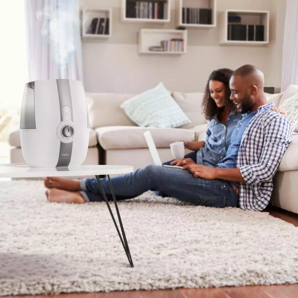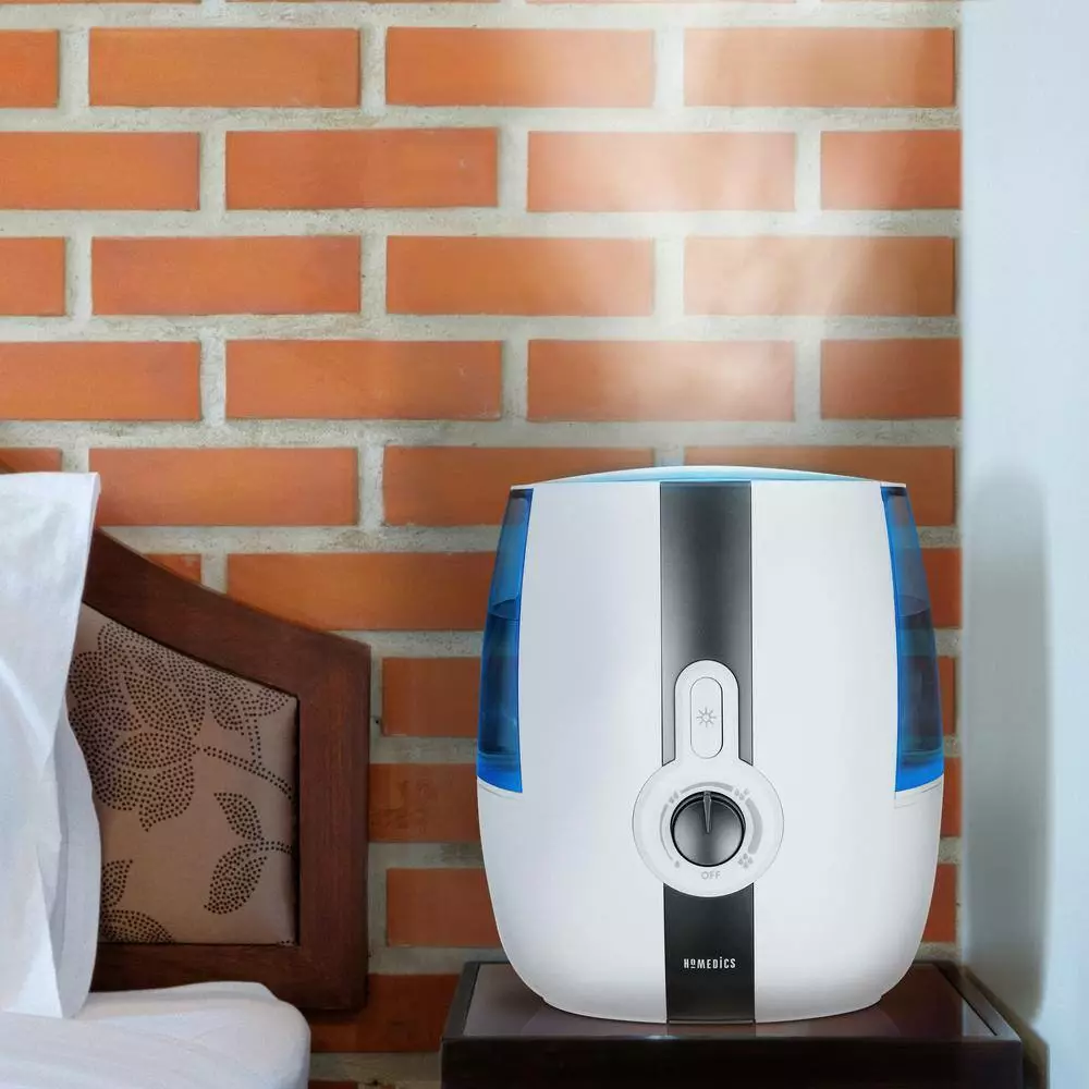 The HoMedics TotalComfort Humidifier has a large capacity tank that gets up to 65-hours of runtime without needing a refill. It was designed with auto shutoff protection that will power down your unit when the water level gets too low. The mist output is cool, giving your air a refreshing feel. The unit provides micro-fine mist, which is easily absorbed into the air. It features a clean mist anti-microbial technology that helps prevent the growth of mold and mildew on the surface of the tank. in turn, this ensures the mist being vaporized into your air is free of these allergens.