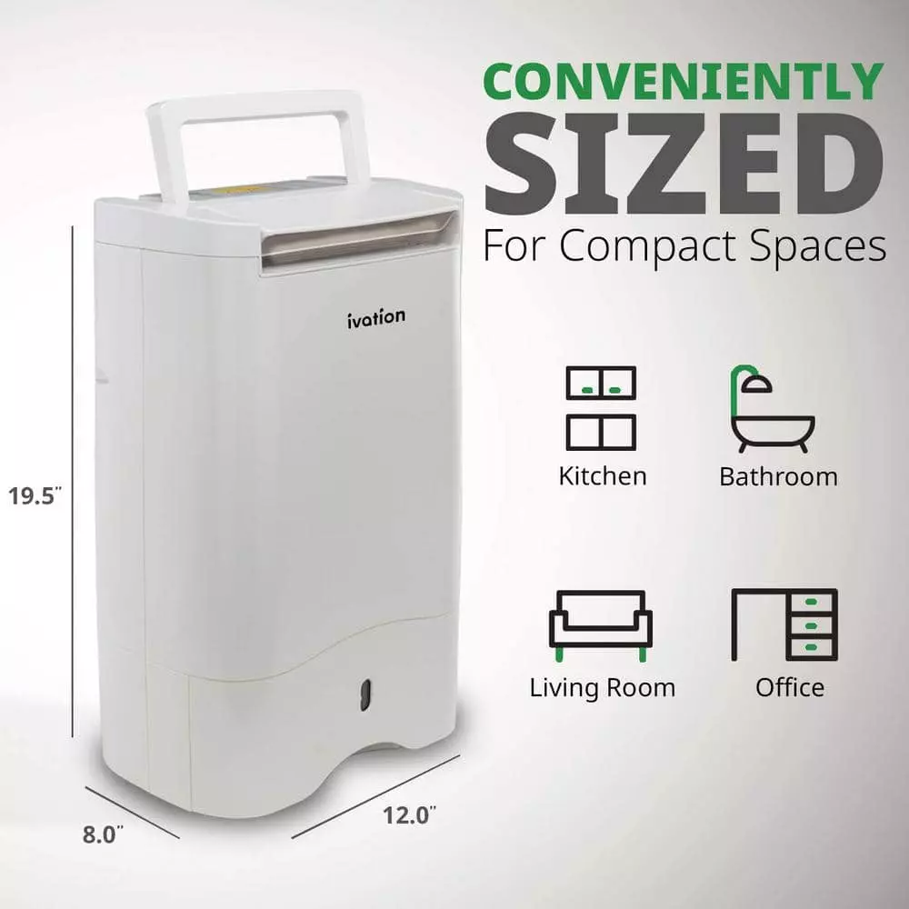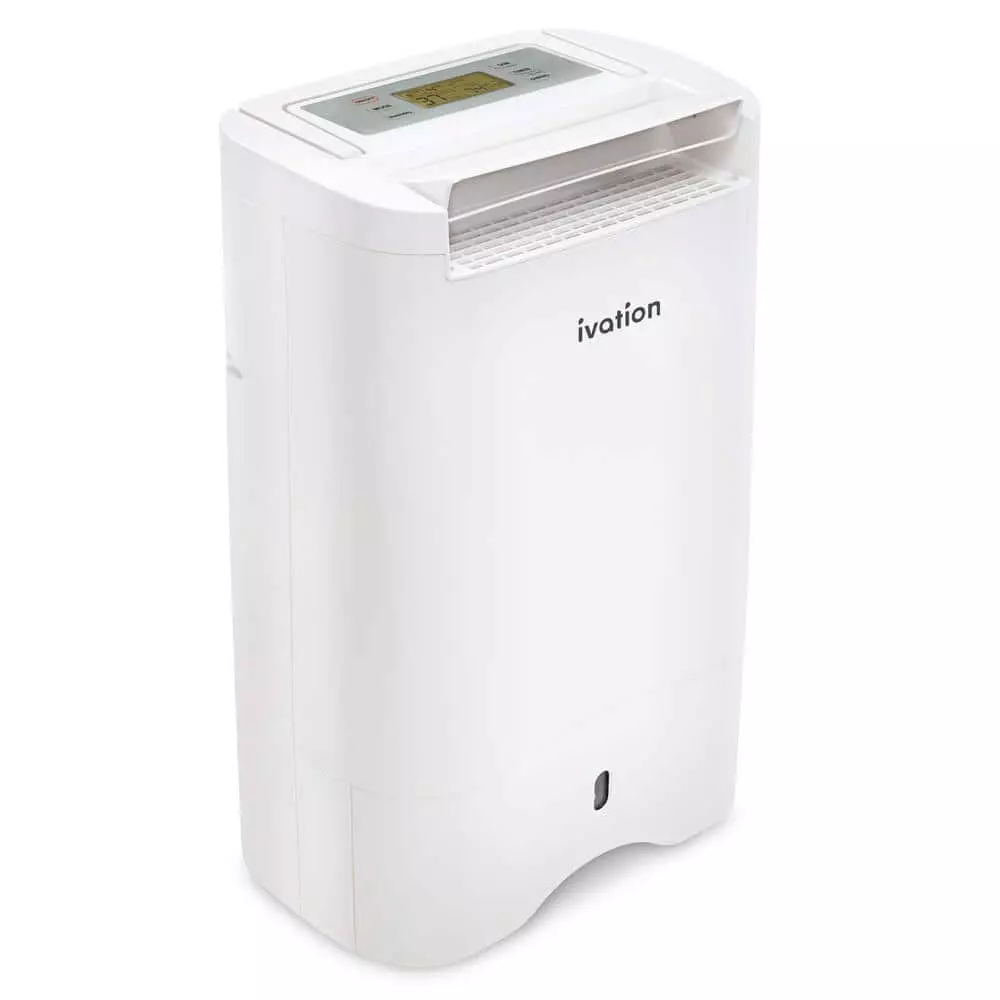 Breathe easy with this all-season air meister. Maintain a dry, comfortable environment-even in cold conditions-with this 19-Pint Desiccant Dehumidifier from Ivation. Unlike large compressors that are heavy, noisy and emit noxious gasses, our desiccant rotor technology retains its efficiency at low temperatures, delivering consistent moisture removal that’s quieter, faster and easier to carry around. Advanced features allow you to view and adjust humidity levels, set a timer, change fan speed and initiate sleep mode. You can even control the air outlet swing for targeted laundry-drying. Say goodbye to pesky mold, sticky humidity, nasty odors and other irritants, and say hello to brisk but breathable air quality. Winter, spring, summer and fall, the decision is easy-bring home an Ivation Desiccant Dehumidifier today. Multipurpose Performance: Due to its unique desiccant technology, our dehumidifier serves a variety of purposes in any space up to 410 sq. ft. Power the unit to extract moisture, eradicate mold and mildew, deodorize foul smells, regulate condensation, dry wet laundry, or dry out rugs and other items following flood damage. Revolutionary Desiccant Rotor: Designed to work wonders in basements, boats, RVs and other cold or semi-outdoor spaces, this new technology dehumidifies rooms as low as 33°F and as high as 104°F [1°C-40°C]. There’s no need for a loud, heavy compressor, so the expelled air is slightly warmer, making it perfect for drying clothes and more.