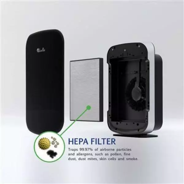 - HEPA filtration removes up to 99.97% of particles as small as 0.3 microns from the air