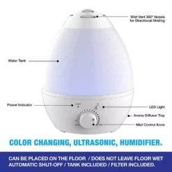 Bell + Howell 1 Gal. Capacity Ultrasonic Color Changing Humidifier with Cool Mist and Aroma Diffuser