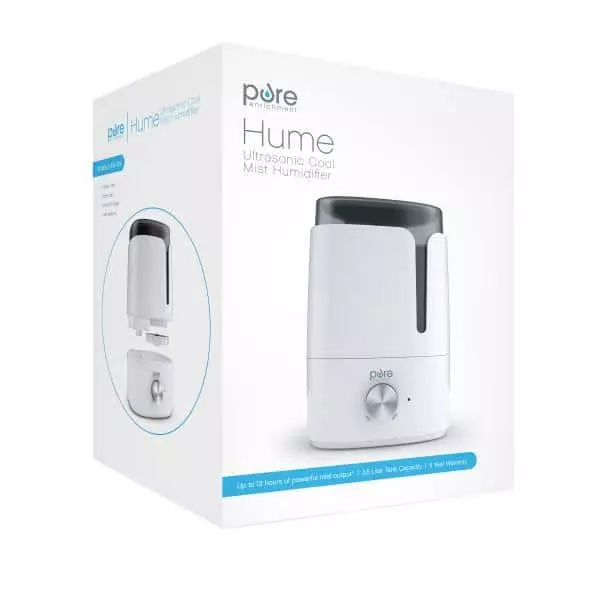 Make every room in your home more comfortable with the moisturizing benefits of the Hume Ultrasonic Cool Mist Humidifier from Pure Enrichment. When used all day, this powerful and aesthetically pleasing humidifier emits more than 1.5 Gal. of moisture into the air to help provide relief for common symptoms associated with dry airlike sinus congestion and itchy, dry skin. The large water tank opening makes it easy to hand wash the inside of the tank to remove buildup and keep the humidifier operating at maximum efficiency-no special brushes or tools needed.