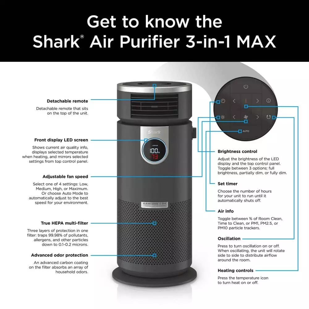 - Whats included: shark air purifier MAX 3-in-1 nanoseal HEPA filter with microban