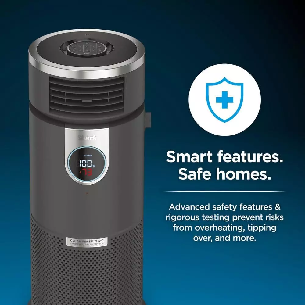 The Shark Air Purifier 3-in-1 uses Pure Air Microforce to deliver fast, powerful, and quiet purification with added purified heat and purified fan modes for spaces up to 500 square feet. Clean Sense IQ senses air quality & auto-adjusts to improve and report results in real time. A HEPA filter captures 99.98% of airborne particles like allergens*, dust, and dander (based on IEST-RP-CC007.3, 0.1-0.2 microns).*”Allergens” refers to non-living matter.