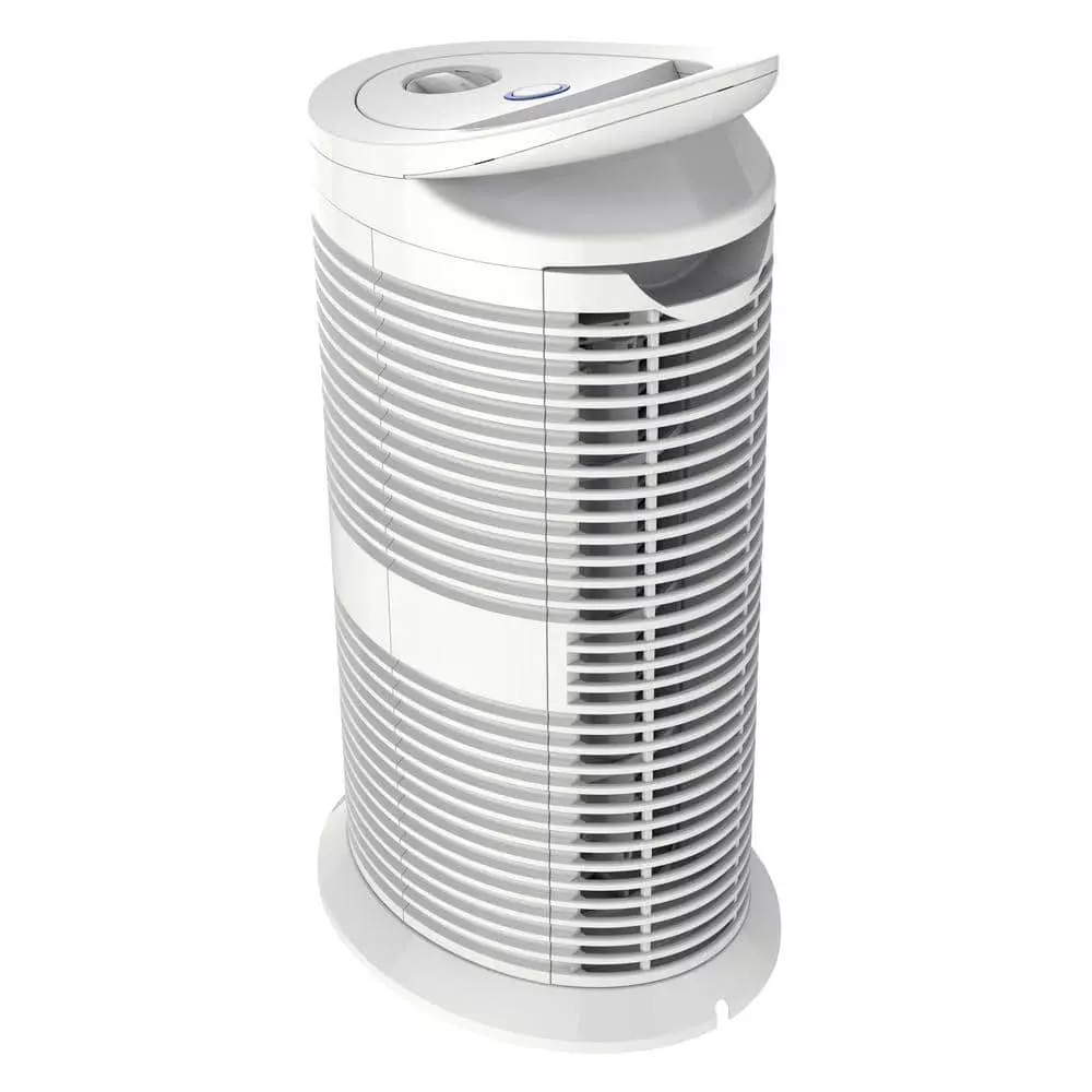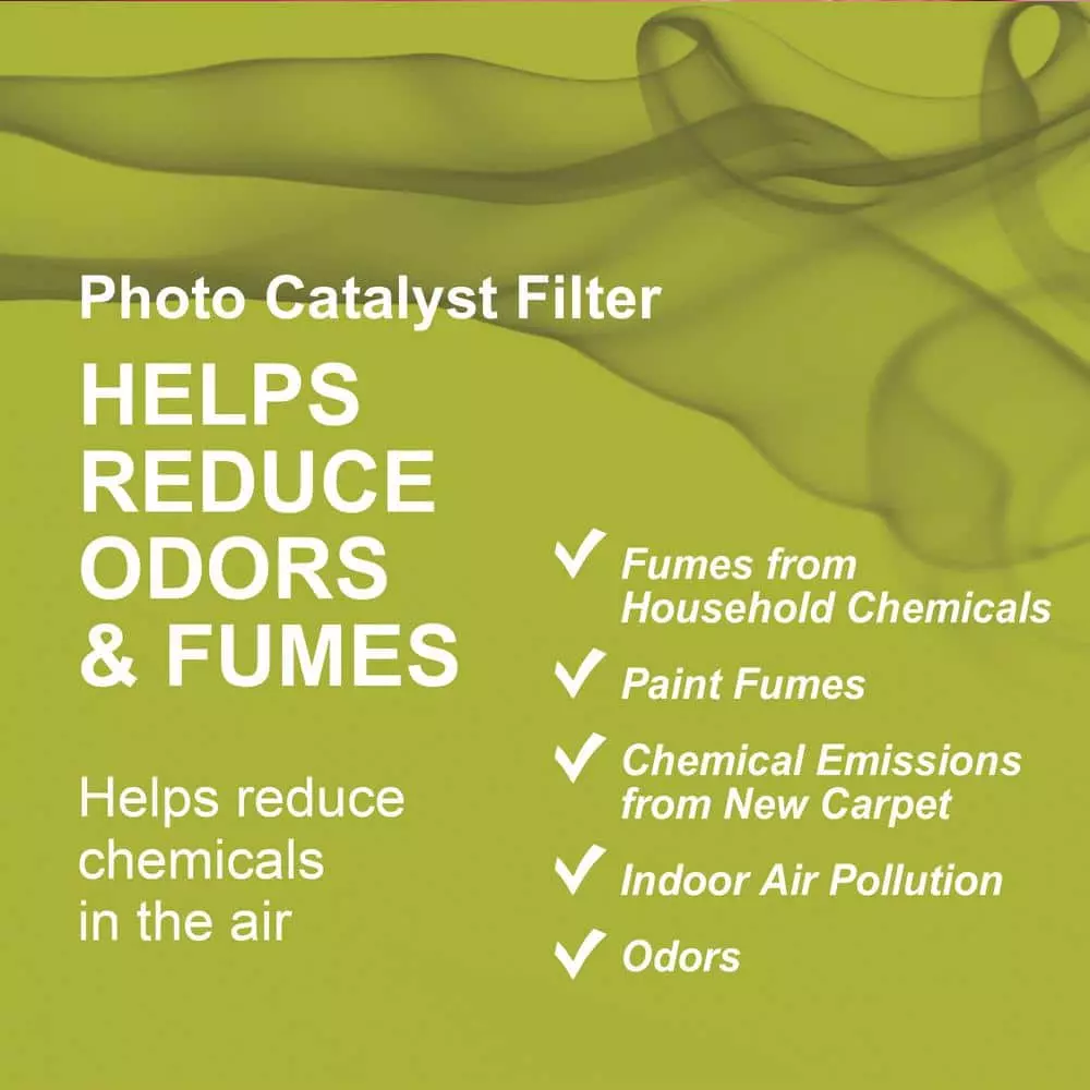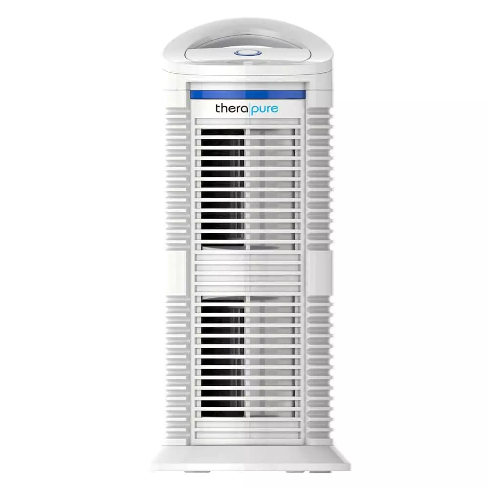 Tabletop Air Purifier with UV. Triple action air purification. A uniquely engineered permanent HEPA-type filter takes out particles in the air. A UV germicidal light kills germs and bacteria and a photo catalyst filter takes out the VOCs (volatile organic compounds), which are found in paint and carpet fumes. Therapure air purifier removes allergens and pollutants including dust mites, pollen, cigarette smoke, mold spores, odors, per hair and dander for more comfortable and healthy living.