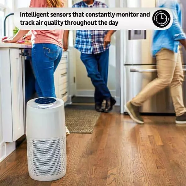 - Sensors monitor air quality and adjust fan speed automatically to work 24 hours a day, 7 days a week3