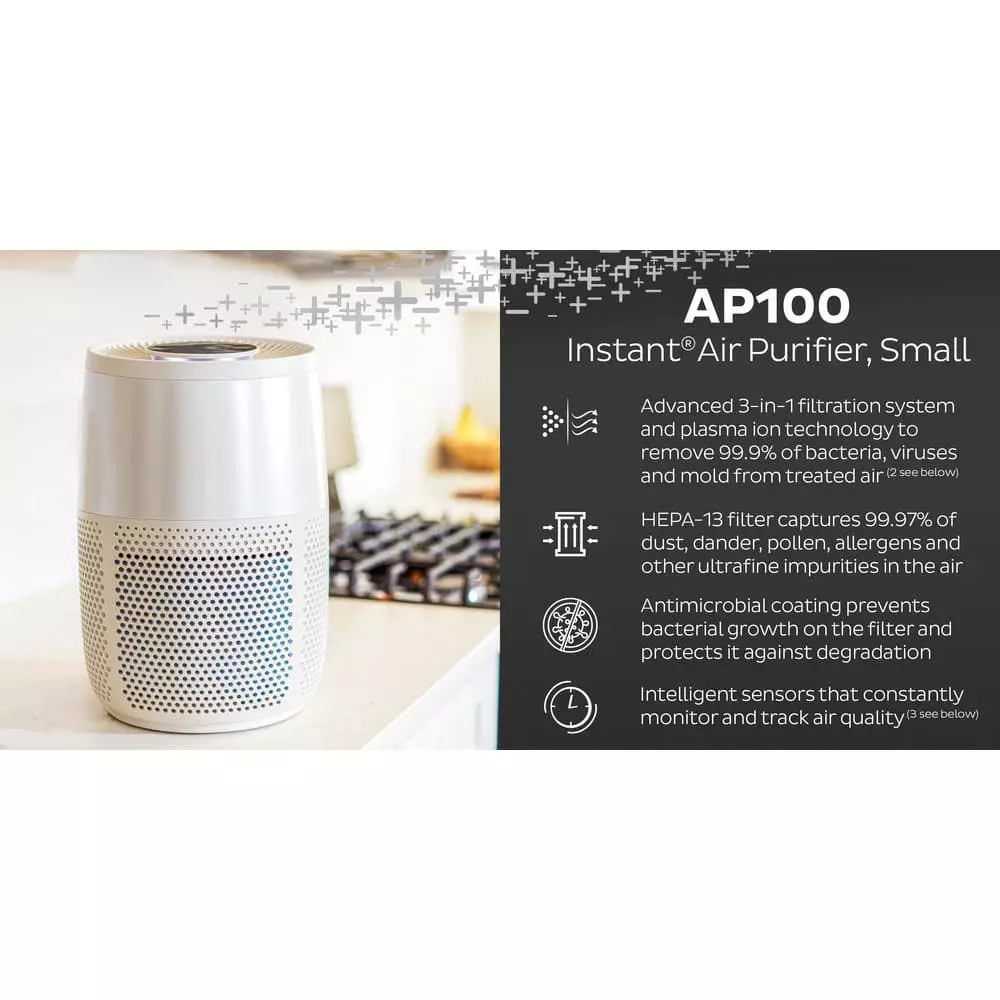 Instant Air Purifier uses sophisticated technology to deliver cleaner air, giving you peace of mind. It pairs an advanced 3-in-1 filtration system with plasma ion technology to remove 99.9% of the virus that causes COVID-19 from treated air. Plus it works to remove 99.9% of other bacteria, virus and mold in treated air. And the built-in sensors monitor the air quality and adjust the fan speed automatically, to work 24 hours a day, 7 days a week. With Instant Air Purifier, you’ll inhale cleaner air, and exhale peace of mind.