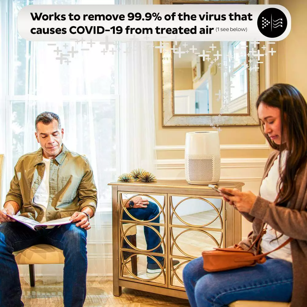 - Uses an advanced 3-in-1 filtration system and plasma ion technology to remove 99.9% of the virus that causes COVID-19 from treated air1