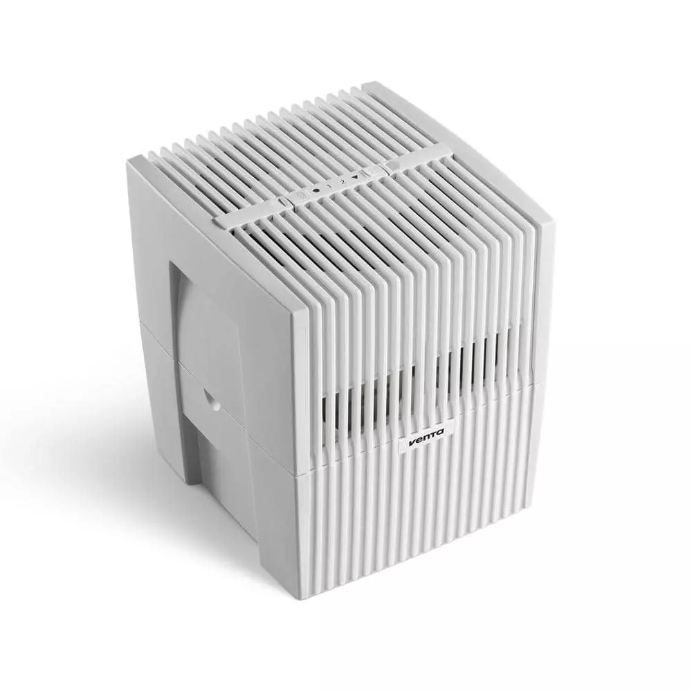 The Venta LW15 Original Humidifier humidifies dry room air in spaces up to 300 square feet (with standard 8-foot ceilings) using evaporative humidification. As a disk stack rotates in the water reservoir, clean water evaporates to humidify the air in your space. This cold evaporation process is recognized as the best humidification method. By implementing the principle of humidifying air for homes and offices without the use of filters, the Venta Humidifier is hygienic, simple to use, and easy to clean. Properly humidified air will also eliminate static electricity and work to preserve wooden furniture and musical instruments. Venta Humidifiers offer the consistent performance of high-end German engineering; delivering optimal indoor air quality with properly humidified air to breathe. This compact 1.4-gallon capacity humidifier is powerful enough to work with indoor spaces of up to 300 square feet, perfect for a bedroom, office, or nursery, and is designed to resist over-humidifying the interior.