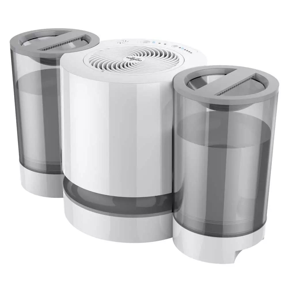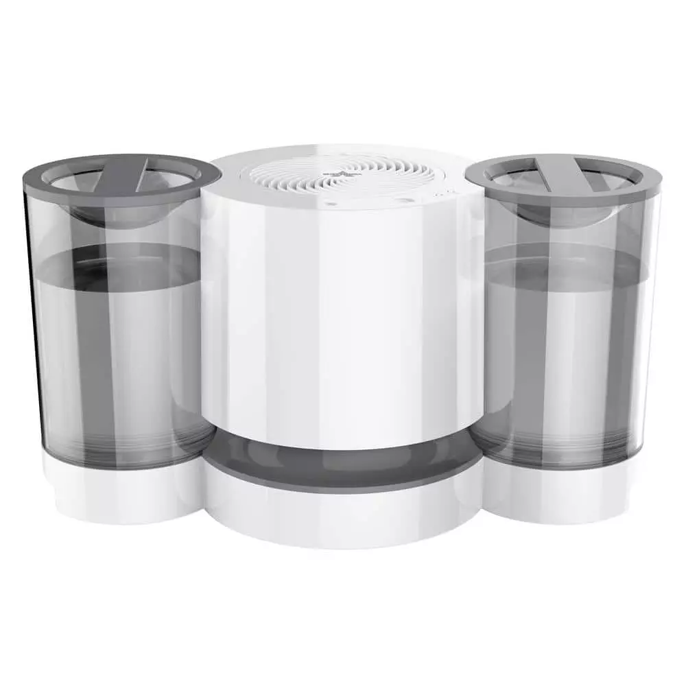 The EV200 gives you more – more tanks, more water capacity and more time to experience whole-room humidification using natural evaporation, which eliminates the mist and messy white dust other humidifiers leave behind. The latest in our new evaporative humidifier family, the EV200 features push-button controls and multiple humidity settings, allowing you to personalize your humidity experience. Its 2 crystal-clear tanks were designed to be simple to carry, refill and install. The easily cleanable humidifier and grill, integrated handles and other safety features ensure a comfortable breathing environment with peace of mind, along with a 5-year satisfaction .