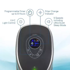 - Light Sensor – Automatically puts unit on quiet fan speed and dims indicator lights once room lights are turned off